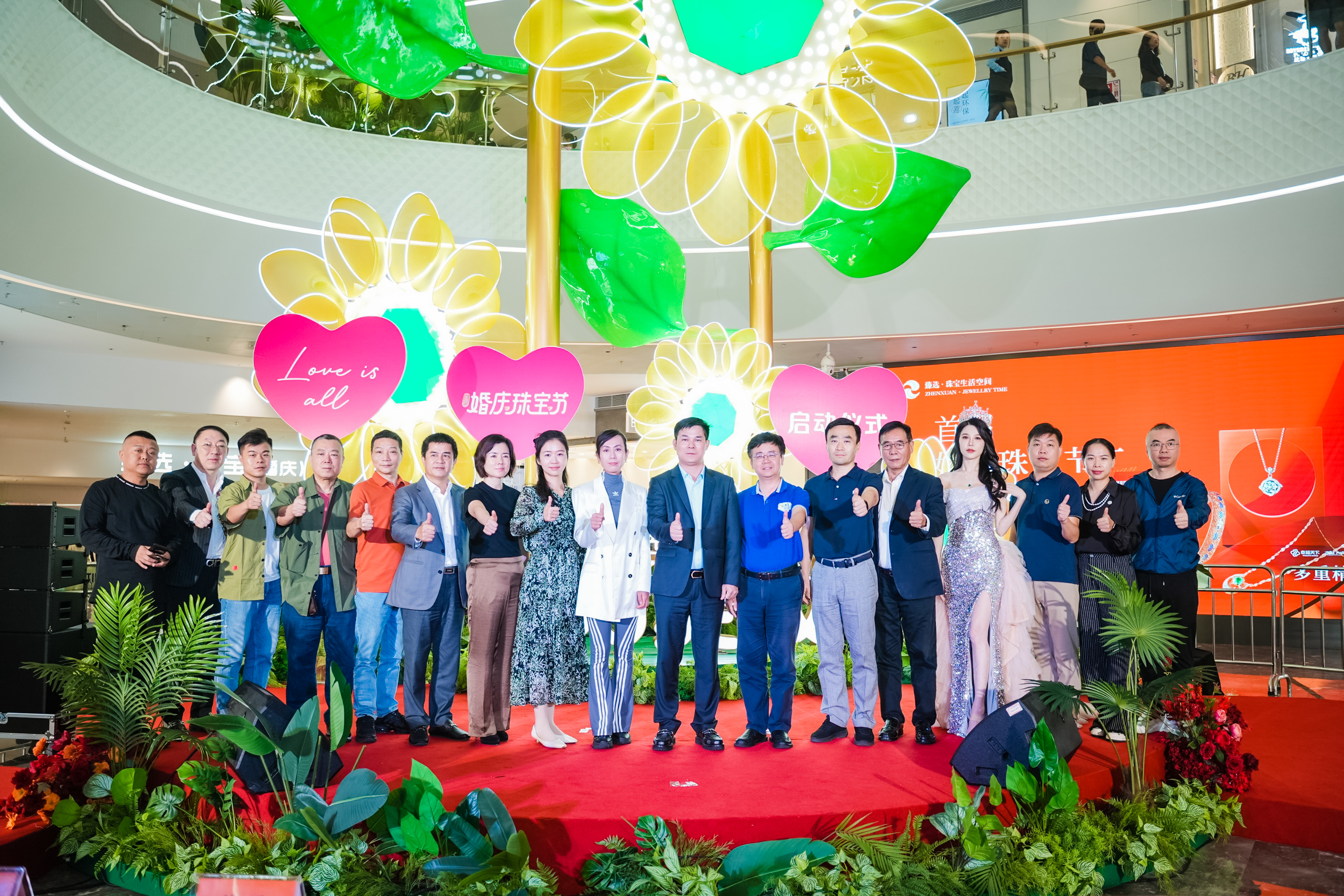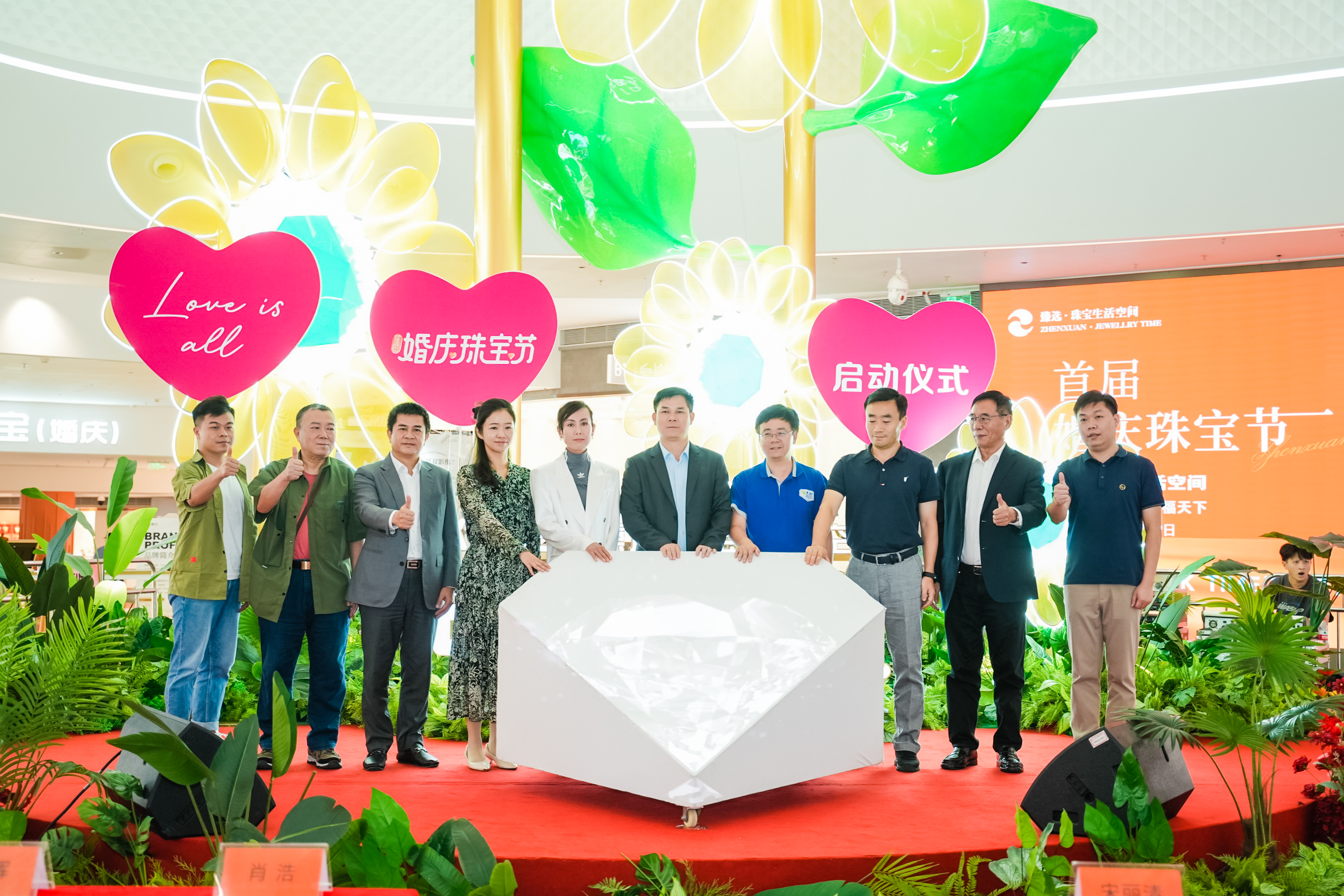 攜手深圳市黃金珠寶首飾行業協會、深圳市婚慶行業協會、深圳市珍珠行業協會等權威行業專業機構;京基集團旗下瑞吉、海灣、洲際三大高端酒店品牌;幸福天下、鉑爵旅拍、王子視覺、鮮檬集團、玫瑰莊園等全國婚慶頭部行業企業,匯聚數萬件精美璀璨的珠寶,集萃全城的優惠福利,打造了一場高規格、高品質的視覺及文化盛宴。在啟動儀式上,獨屬于中國的浪漫與愛——婚紗珠寶風尚秀帶來華美開場,東方品質感一覽無余。隨后到場嘉賓領導共同啟動珠寶裝置,宣布首屆“婚慶珠寶節”正式開啟。