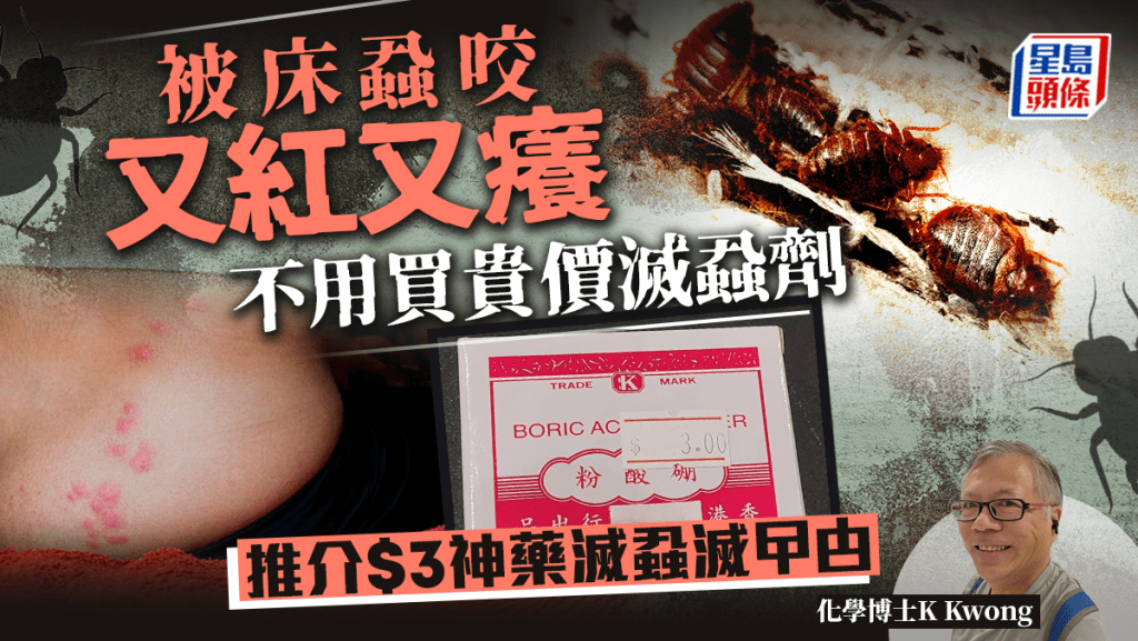 韓國虱患蔓延至香港!近日有傳在機鐵、巴士發現床虱蹤影,小心連家中都遭床虱占據,被咬到全身又紅又腫。本港化學博士鄺士山(K Kwong)發文,推介1款僅售3元的滅蟲藥,指其與售價數百元的滅虱藥效果一樣,更可用來殺蟑螂,并講解使用時的注意事項,以免中毒。