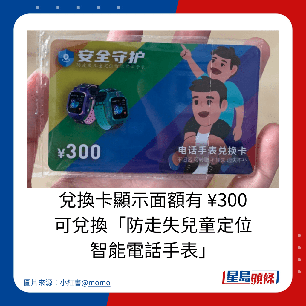 兌換卡顯示面積額有 ¥300 可兌換「防走失兒童定位 智能電話手表」