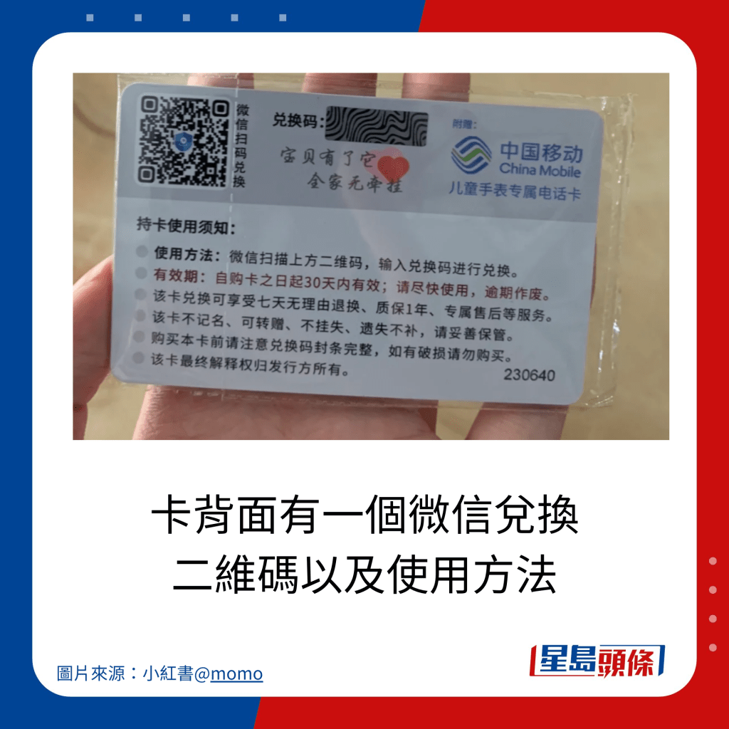 街邊拾獲中國移動 ¥300“電話手表兌換卡”