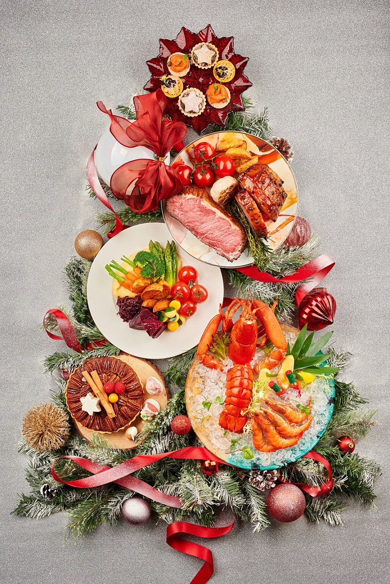 澳門JW萬豪酒店旗下“名廚都匯”自助餐出名性價比高,圣誕節加推應節菜式如烤圣誕火雞、圣誕蜜糖烤火腿、紅酒燉牛頰肉及葡式焗肉餅等;必食海鮮則有即開法國生蠔、波士頓龍蝦及即席烹調香烤大蝦等。平安夜及圣誕節當天更特別增添果子面包、樹頭蛋糕等經典圣誕甜品,讓大家以味覺感受節日氣氛。