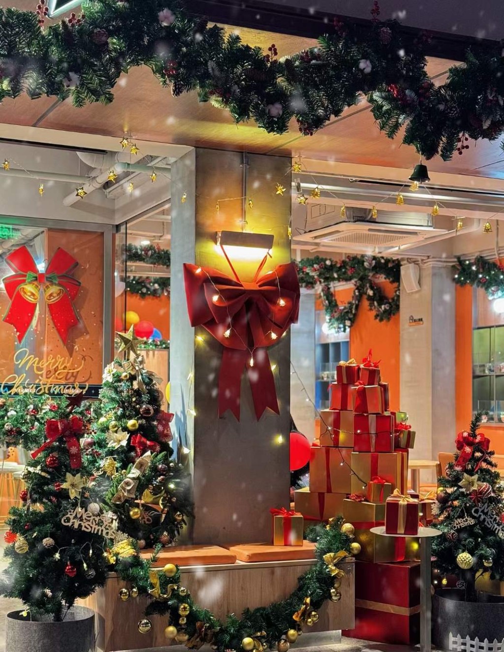 ▲華為坂田Nice Coffee &Bakery店內及店外皆換上全新的圣誕節布置,拱形的入口處用上搶眼的紅色蝴蝶結配圣誕吊飾,滿載節日氣氛。