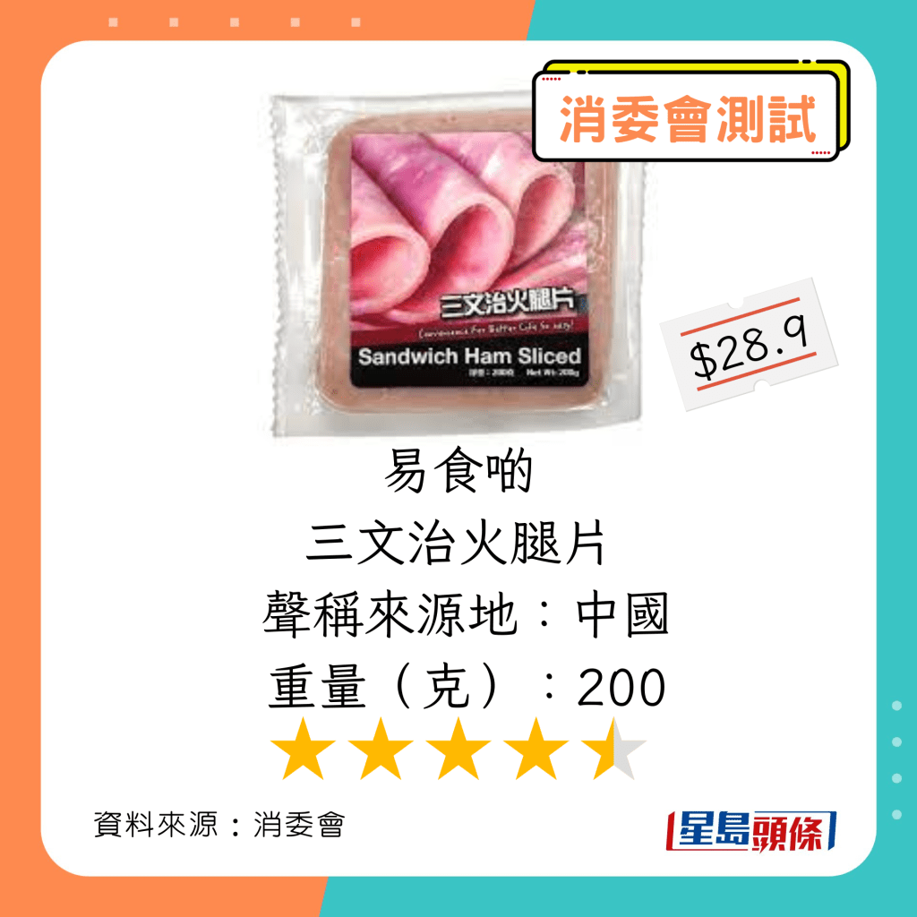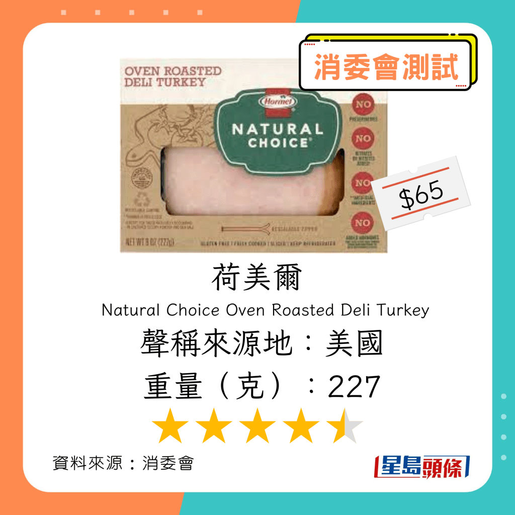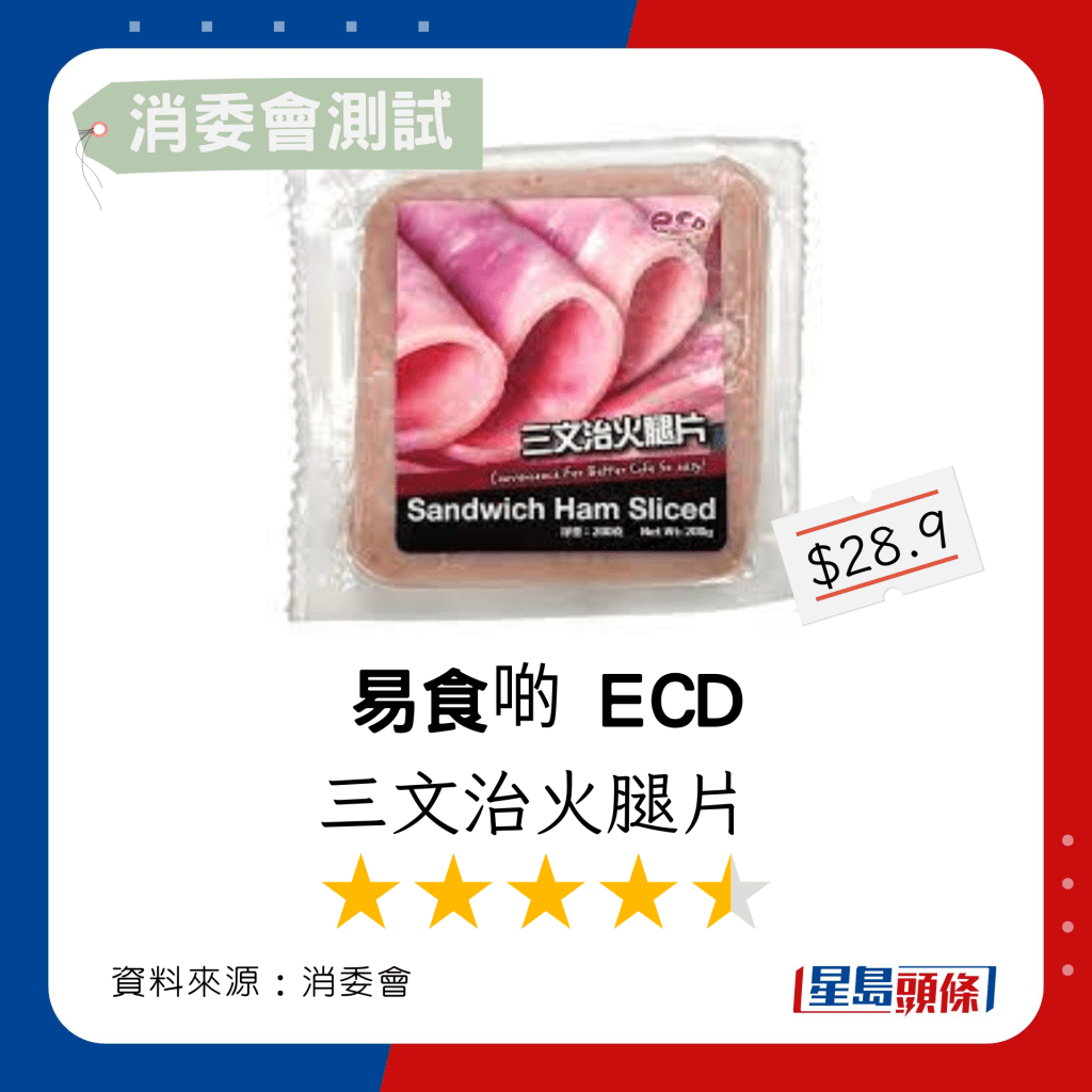 根據《選擇月刊》第542期測試報告,消委會早前曾檢測市面上23款火腿、7款火雞片。測試結果顯示,在安全及營養方面,有7款火腿、火雞片總評分獲4.5分以上,而且不含塑化劑,較為安全。