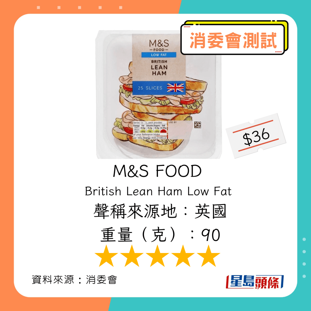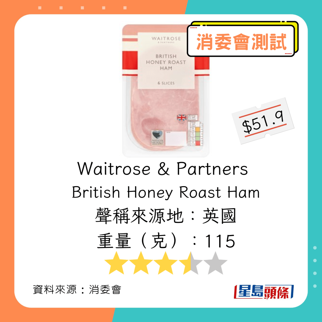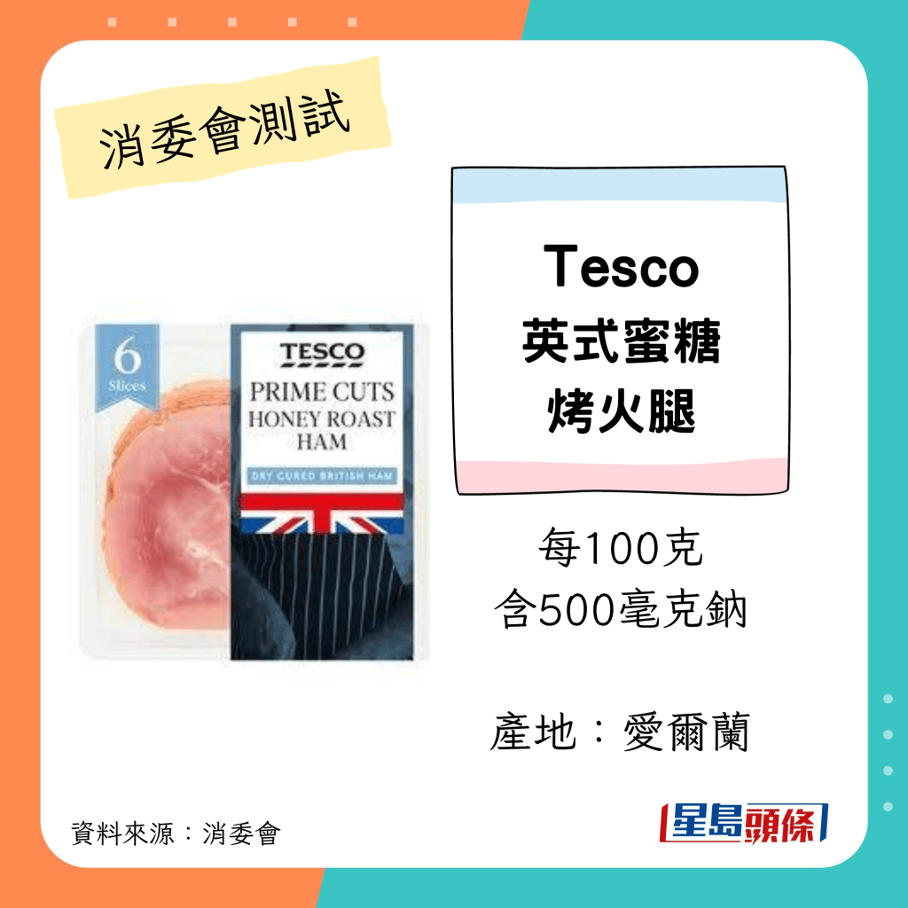 • 火腿鈉含量最低:“Tesco”英式蜜糖烤火腿(每100克含500毫克鈉)