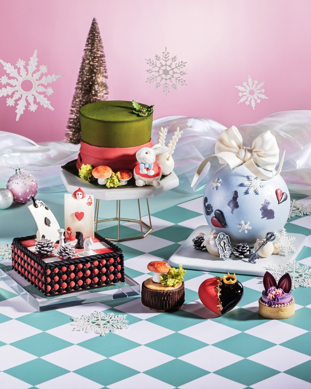 如果是童話故事《愛麗絲夢游仙境》的粉絲,今個圣誕一定不能錯過帝港酒店旗下的餅店的餅店Royal Delights (R+)。 今年圣誕推出了愛麗絲蛋糕系列,最吸引的有“瘋帽子”造型的紅桑子開心果巧克力蛋糕,杏仁巧克力海綿蛋糕,搭配開心果云呢拿奶油,再加上巧克力軟心餡、紅桑子軟啫哩和開心果脆脆,口感豐富。 另外又有“紅心王后”的黑芝麻紅豆達克瓦茲、“愛麗絲的奇幻圣誕”的香蕉巧克力慕絲蛋糕,總有一款合你口味。
