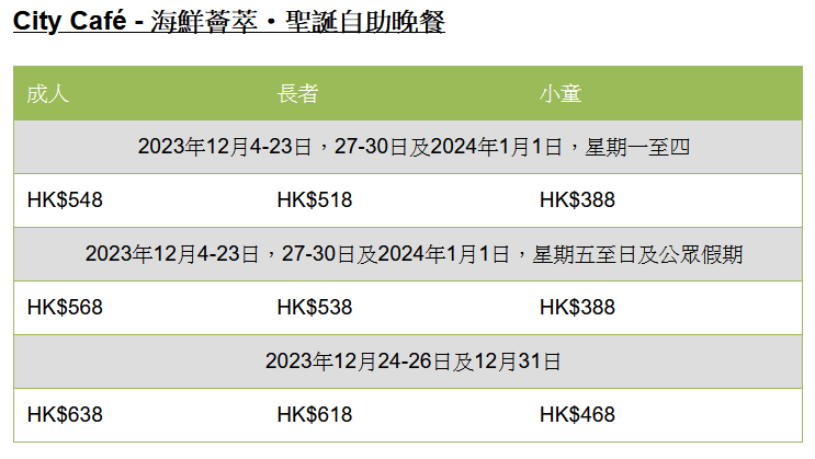 城景國際City Café「海鮮薈萃. 圣誕自助晚餐》—圣誕自助餐原價及優惠。