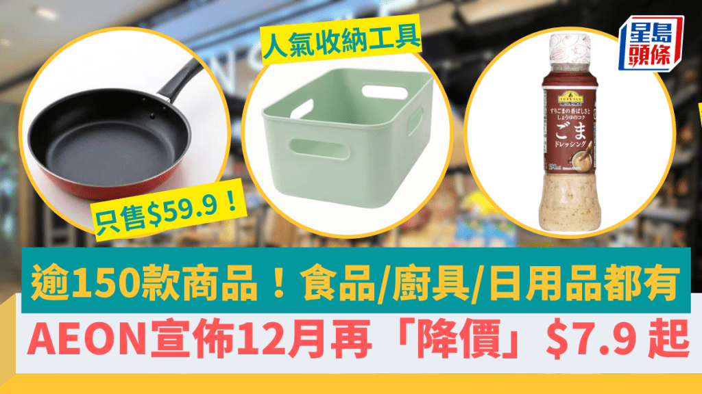 AEON宣布由即日起至2024年2月29日,再次推出“降價宣言!” ,超過150件食品和日用品調整價格發售,涵蓋多款煮食品、衣服、飲料、衛生用品和家居用品,包括AEON自家品牌收納箱、廚具、清潔用品、寵物用品等,減價后最平$7.9入手!