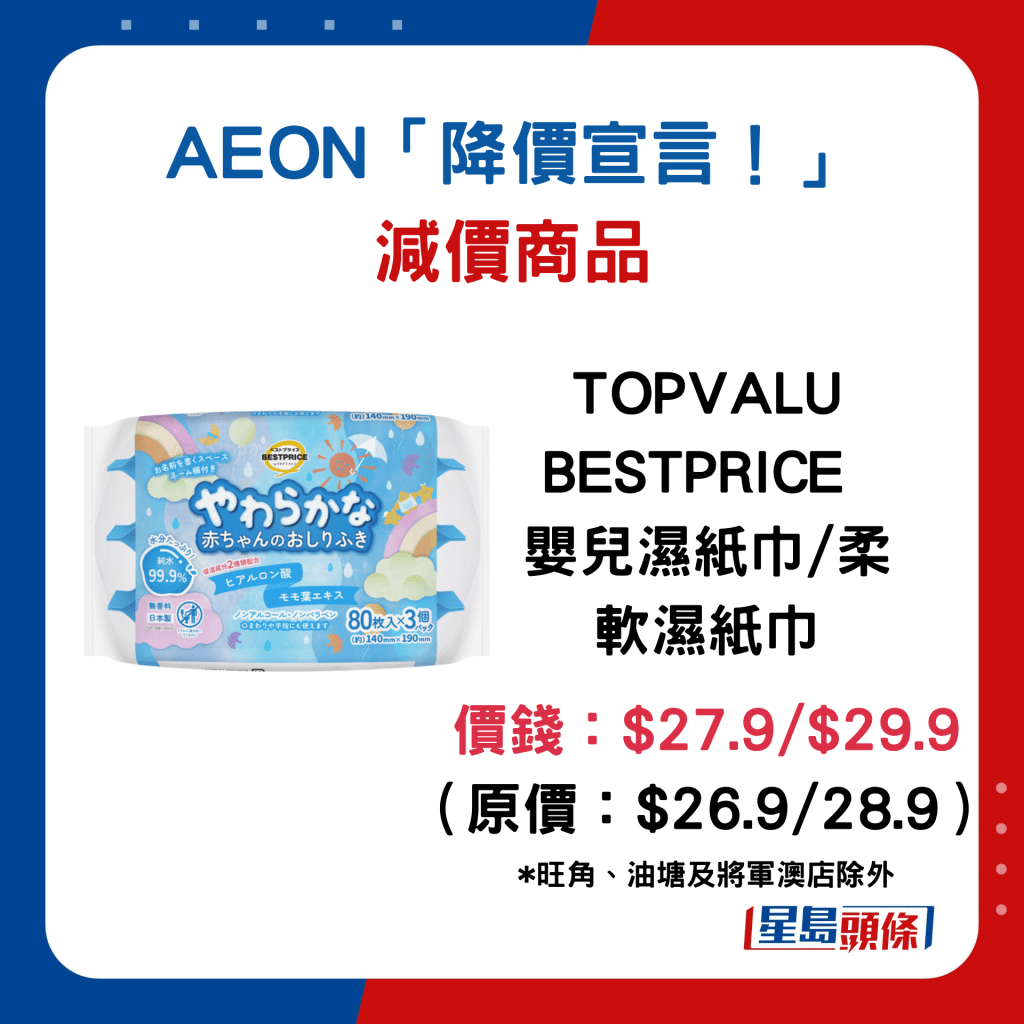 TOPVALU BESTPRICE 嬰兒濕紙巾/柔軟濕紙巾:$26.9/28.9(原價價$27.9/29.9)