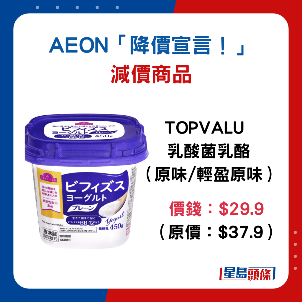 TOPVALU乳酸菌奶酪(原味/輕盈原味):$29.9(原價$37.9)