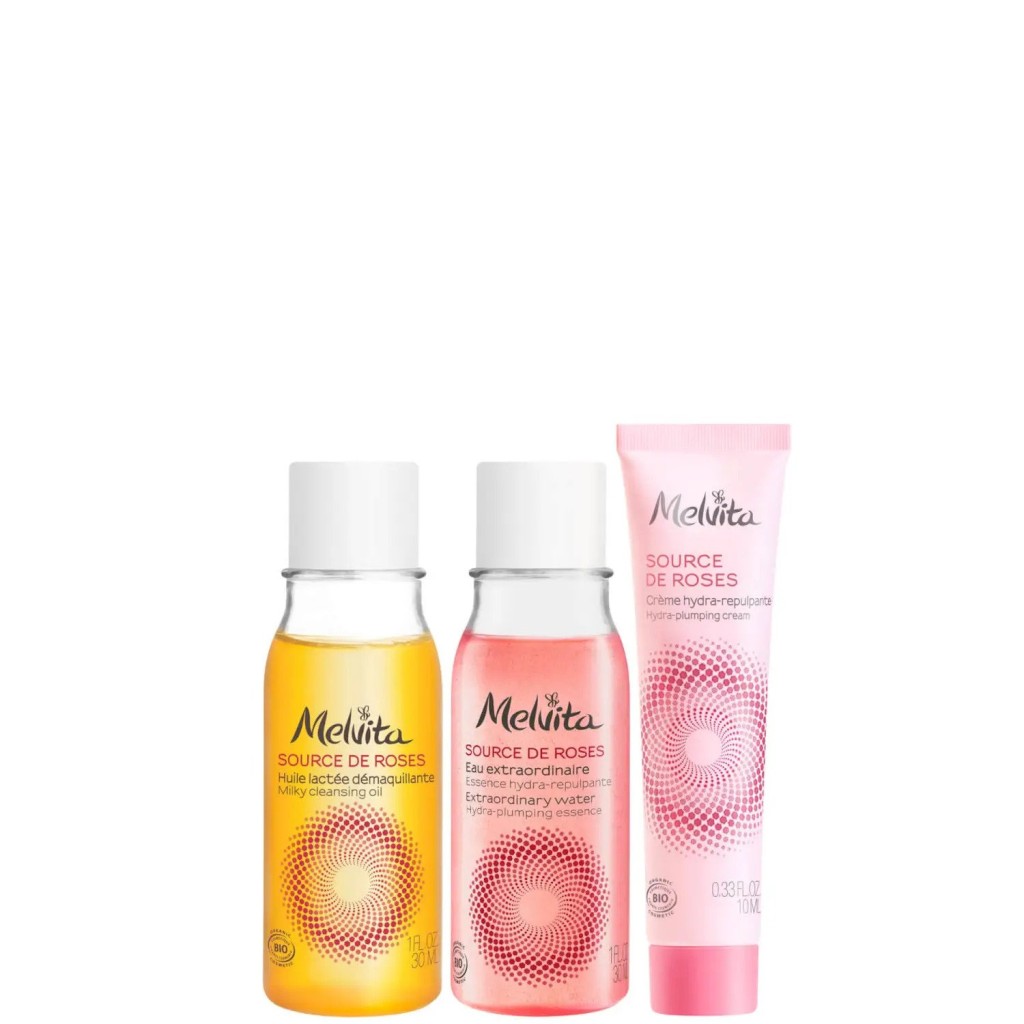 野玫瑰保濕旅行套裝、原價$213、現售$180、ME,包括有機野玫瑰保濕凈膚油、濕微精華水 及復活保濕面霜。