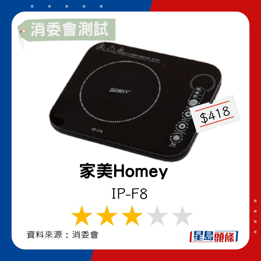 至于余下7款電磁爐表現又如何? 在消委會測試中,其總評分為3至4星,整體分數稍低: