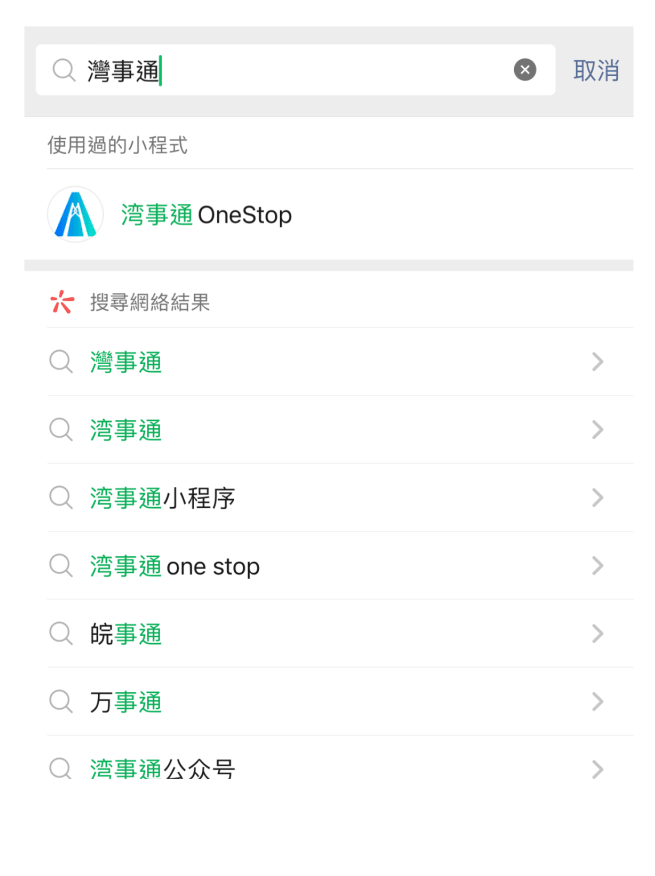 ▲以使用WeChat為例 在搜索輸入“灣事通”