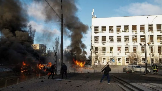 烏克蘭官員稱,俄羅斯周三接連發射10枚彈道導彈襲擊烏國首都基輔,雖然全部被烏軍防空系統擊落,但導彈殘骸碎片擊中房屋和一家兒童醫院,造成至少53人受傷。