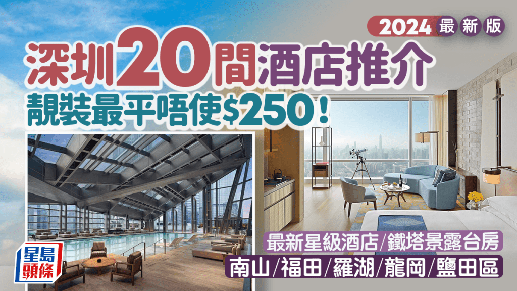 北上深圳吃喝玩樂,行程活動咁豐富,只玩一日又怎夠過癮!怕即日來回稍微太頻撲,不妨住一晚酒店過一晚夜,享受兩日一夜的小旅行?!缎菎u環球網》網一口氣精選20間深圳酒店,分別位于福田、南山、羅湖、龍崗、鹽田區,由最新的貴價星級酒店,到平價精品酒店,豐儉由人,即睇以下推介。