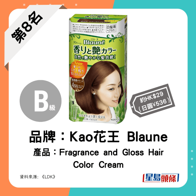 第8名:Kao 花王 - Blauné Fragrance and Gloss Hair Color Cream