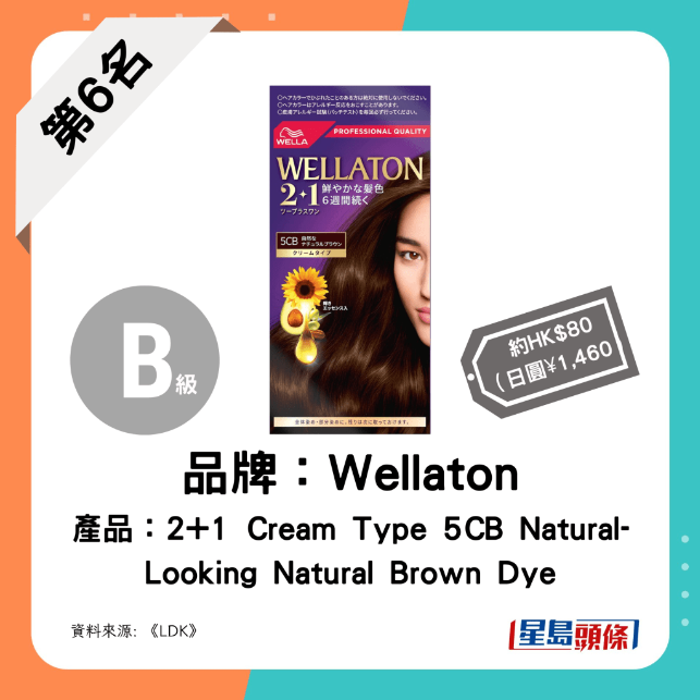 第6名(并列):Wellaton 2+1 Cream Type 5CB Natural-Looking Natural Brown Dye