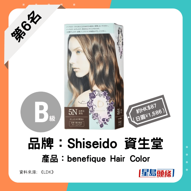 第6名(并列):Shiseido 資生堂 - benefique Hair Color