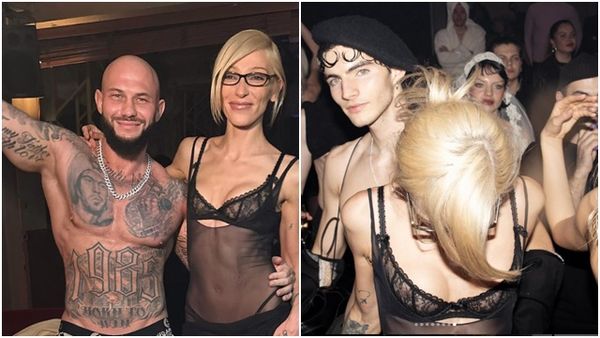 女性身著半透明薄紗、蕾絲內衣參加派對。