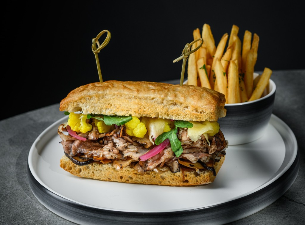 招牌煙熏牛肉三文治,傳統的意式白面包Ciabatta夾上店家招牌的煙熗薄切牛肉,鮮香美味。
