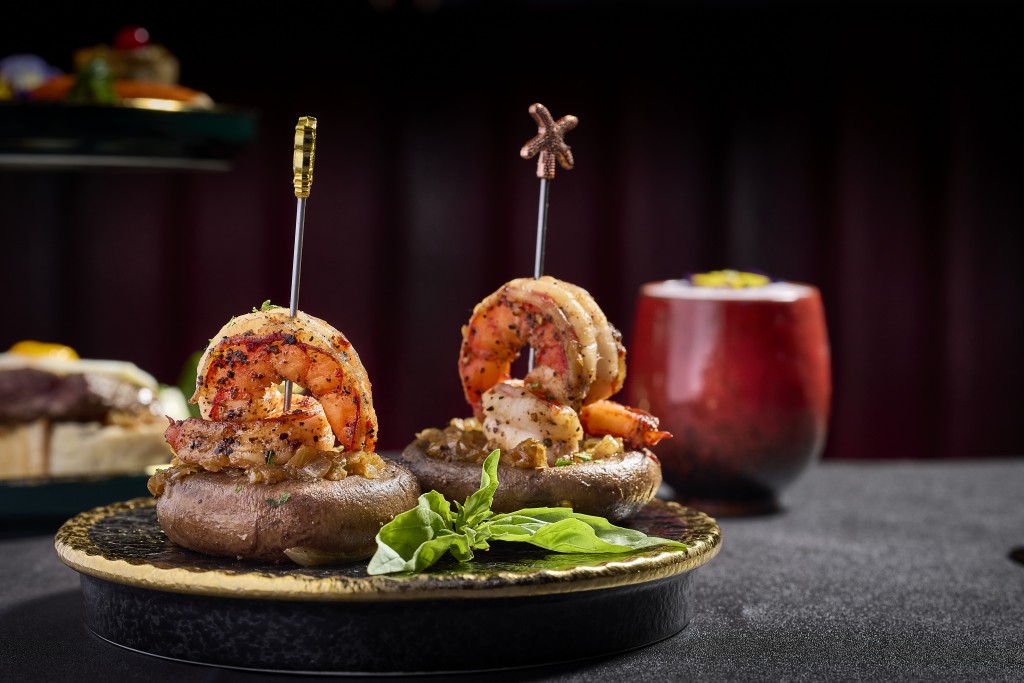The Mansion沉浸式酒吧——烤大蝦拼大啡菇,新鮮大啡菇多汁不干身,伴脆卜卜的大蝦來吃,特別鮮味。