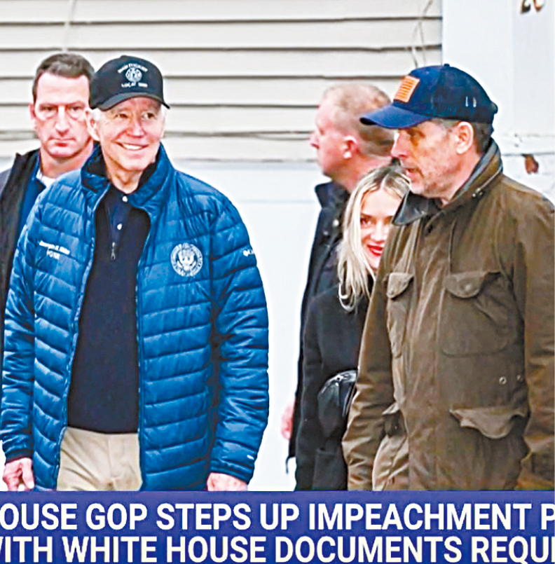眾議院向白宮索取文件,希望了解總統拜登有否與兒子亨特協調,讓亨特拒絕出席聽證會。 電視截圖