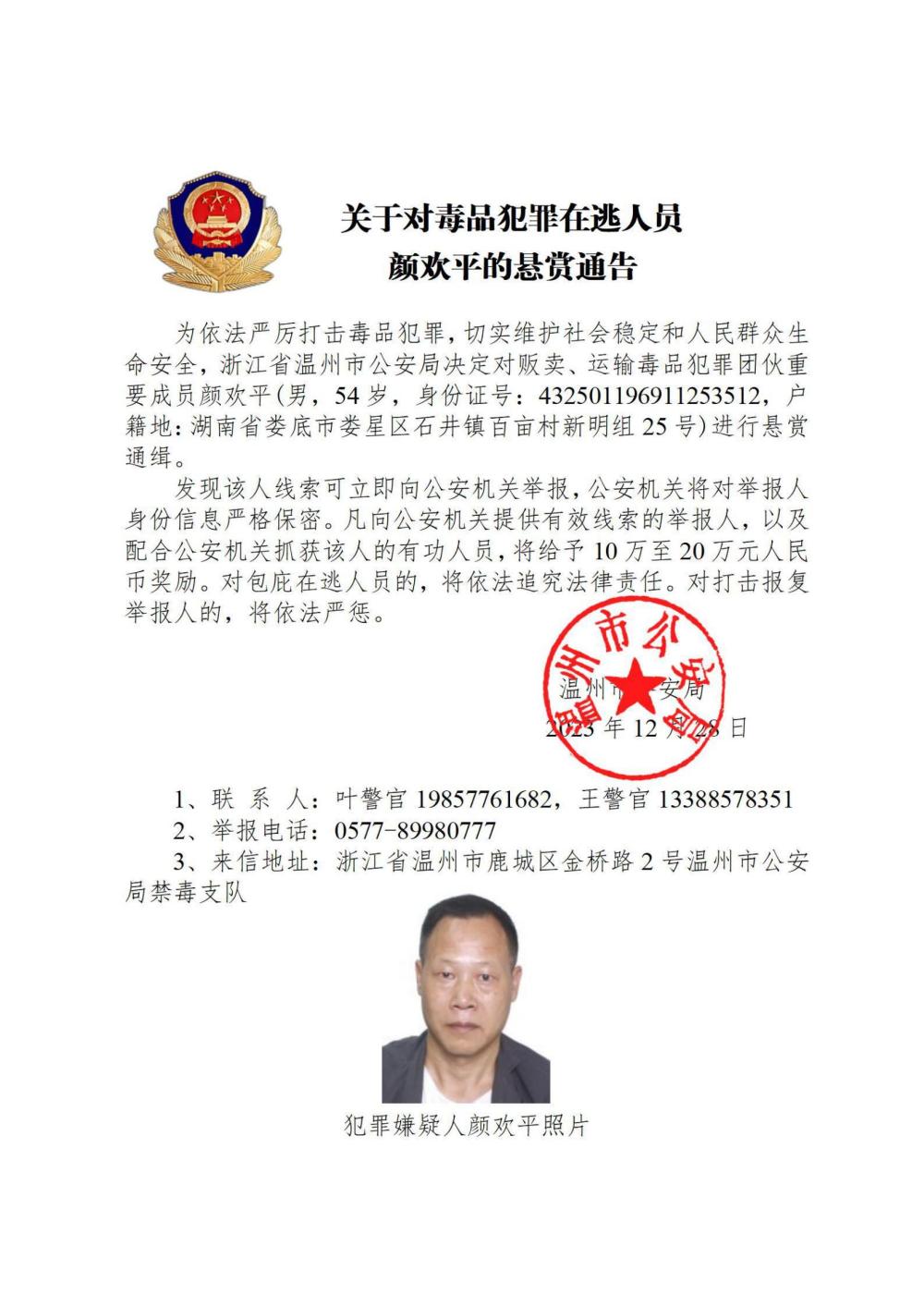 其中,湖南省郴州市公安局決定對張安龍、馬文祥、吳玉楊進行公開懸賞通緝;湖南省株洲市公安局決定對楊金梅進行公開懸賞通緝;江西省新干縣公安局決定對曾小勇、李國平、孫強進行公開懸賞通緝;浙江省溫州市公安局決定對顏歡平進行公開懸賞通緝;四川省遂寧市公安局決定對母朝東進行公開懸賞通緝;貴州省黔東南州公安局決定對龍華進行公開懸賞通緝。