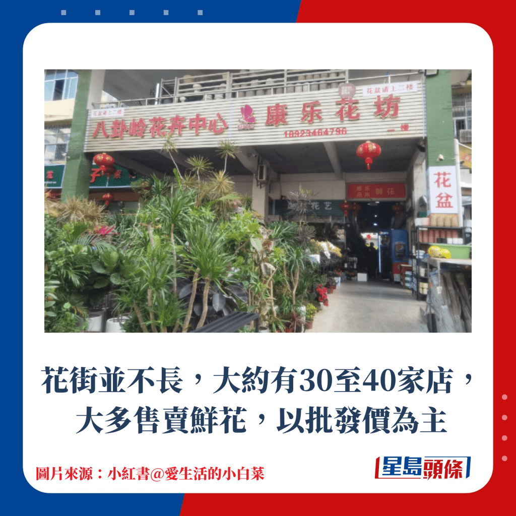 花街并不長,大約有30至40家店,大多售賣鮮花,以批發價為主