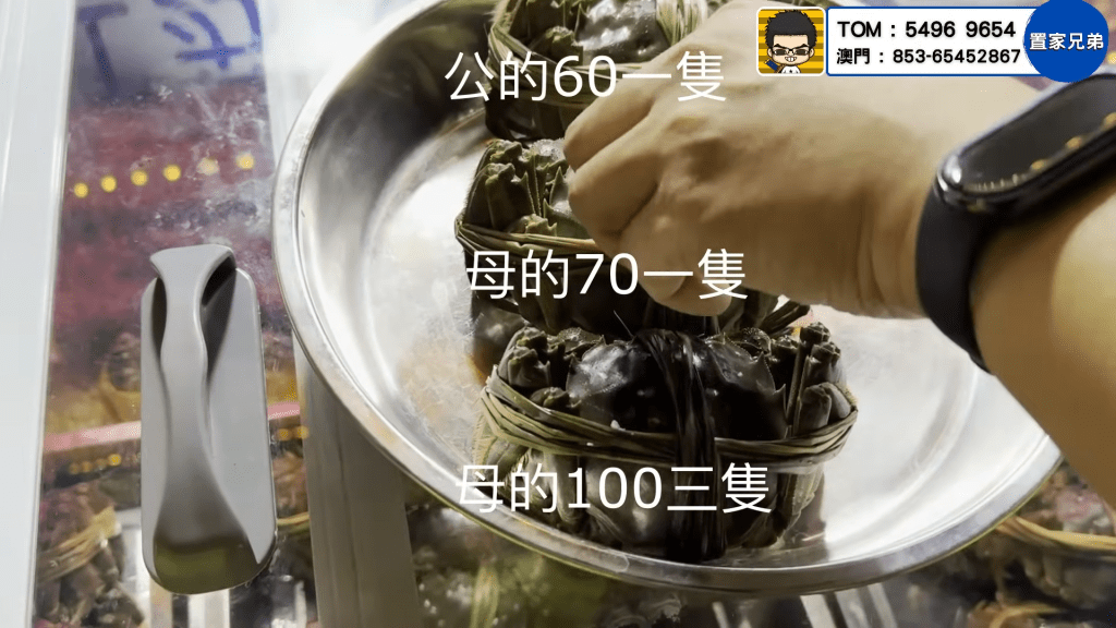 公大閘蟹¥60一只,母大閘蟹¥70一只、3只¥100 (圖片來源:Youtube@ CKBRO 置家兄弟)