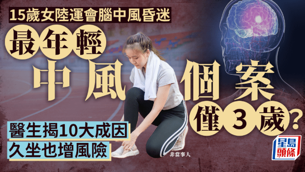 年輕不代表沒腦中風危機。香港一名15歲中四學生于昨日(1月11日)在灣仔參加陸運會時突然昏迷,送院后被發現腦部血管瘤爆裂,導致出血性中風。近年中風有年輕化趨勢,常見原因有10種。有醫生分享病例指,最年輕中風個案僅3歲。中風前一般有7大先兆,頭痛恐是警號之一。