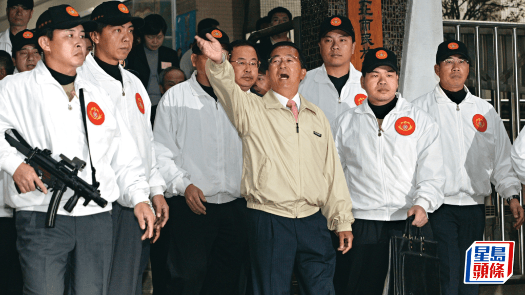▲陳水扁中槍翌日由荷槍人員貼身保護到票站投票。星島資料圖