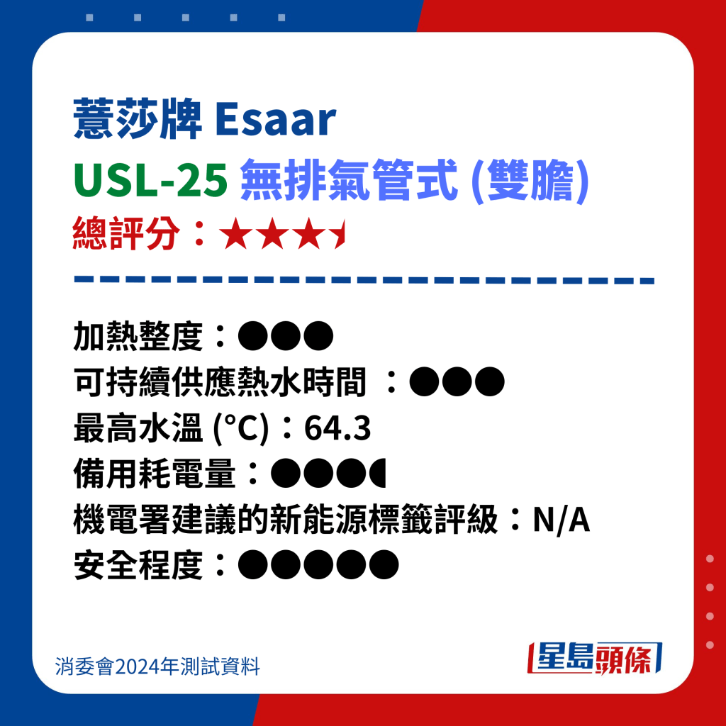 消委會今次測試的12款儲水式電熱水爐這些電熱水爐,定義為可將冷水加熱并長期儲存為熱水,并且都具有相同的額定輸入功率為3,000瓦特。 零售價格范圍從$1,280到$6,980,當中并不包括安裝費用。