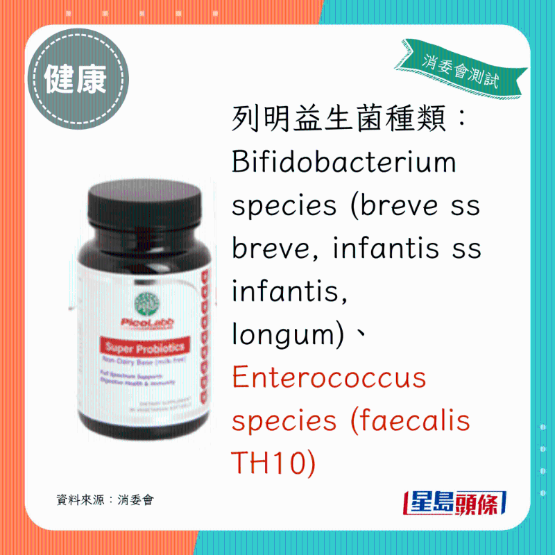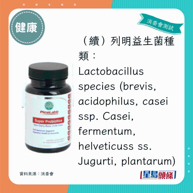 以下15款益生菌產品清楚列明菌種、菌株名稱,有助大眾辨識(詳情可參閱上圖):