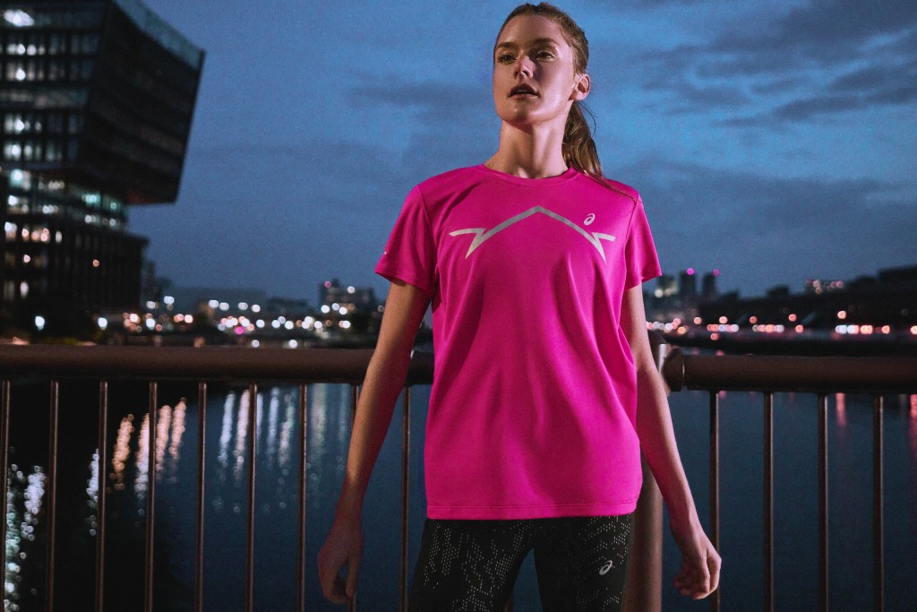 Winter Lite-Show系列女裝T恤$330 AS,胸前、衣袖及背部采用先進的反光細節設計,當中50%衣料由循環再造物料制成及具快干功能。