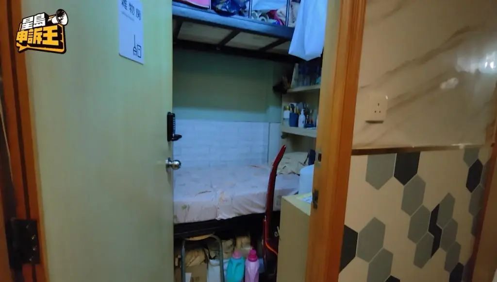 而第二晚的雜物房,門外寫著雜物房三字,只在房門設置密碼鎖。李小姐開門可見,房內非常雜亂,床底與床邊還放滿清潔用品和消毒藥水。