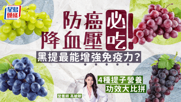 水果營養豐富,提子(葡萄)是深受港人歡迎的水果之一。有營養師指,不同顏色的提子營養價值大不同。青提、黑提,紅提等,哪一種提子最有益?吃提子可防癌、降血壓?想改善免疫力吃黑提最有效?