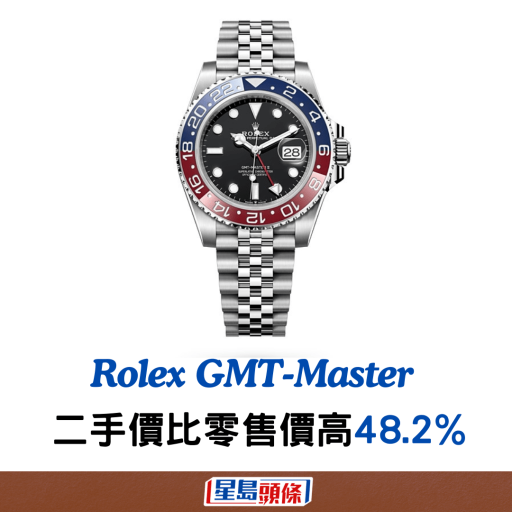 勞力士的GMT-Master系列二手價可比零售價高出48.2%。