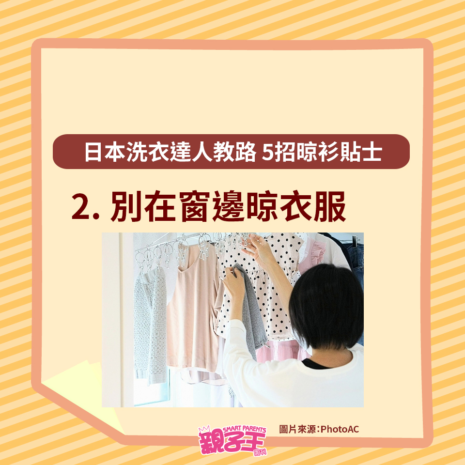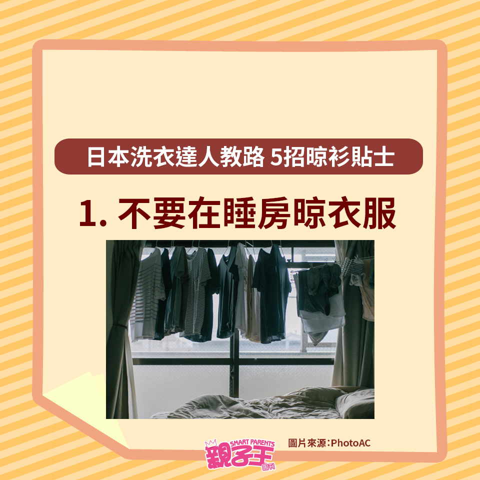日本洗滌專家松延友記曾于節目分享,回南天潮濕時,洗完的衣物無論放多久都難以干透,更容易發出難聞的霉臭味,原來這是潛藏在潮濕衣物中的細菌“Moraxella”的排泄物所造成,別小看這些細菌,除了會帶來難聞氣味,也有機會造成肺炎等多種疾病,故此一定要清除。 如想減少因衣服難干而細菌滋生,就要用以下5種方式來幫助快速晾干衣服。