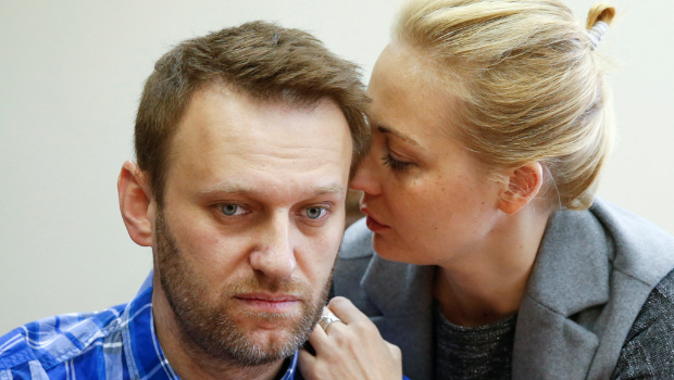 納瓦尼與妻子2015年在莫斯科出席聽證會時的留影。