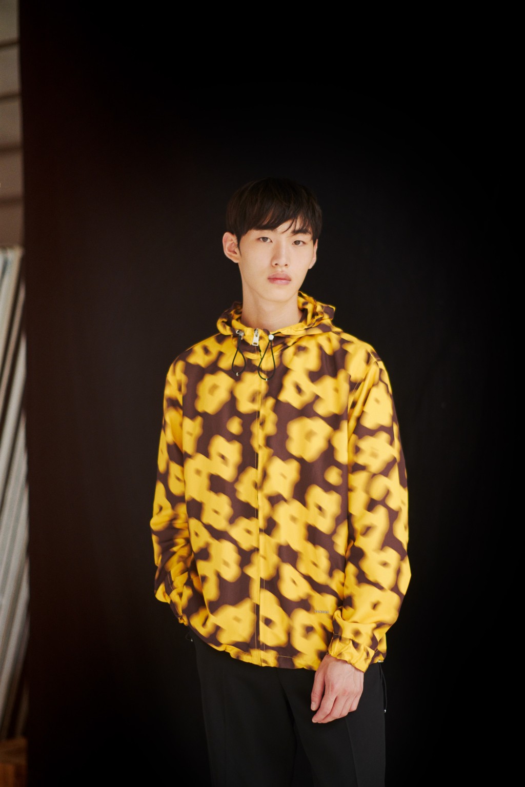 andro男裝拉鏈連帽外套 $3,690,褸身飾以水彩畫風的花束圖案。