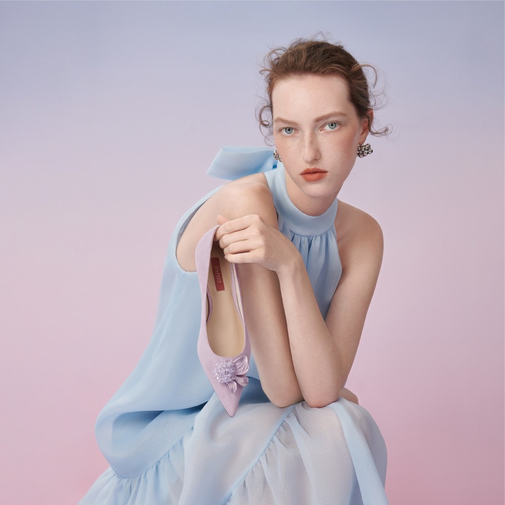 花朵形態千嬌百媚,正是時裝設計師的春季主要取材。本地鞋履品牌Joy & Peace新登場的春夏系列,正以鳶尾花為主角,巧妙將金屬細節打造成烤漆效果,結合幻彩水晶串珠,塑造出立體的鳶尾花飾,部分鞋身更配搭閃片、羊絨及皮革,更添女性韻味。