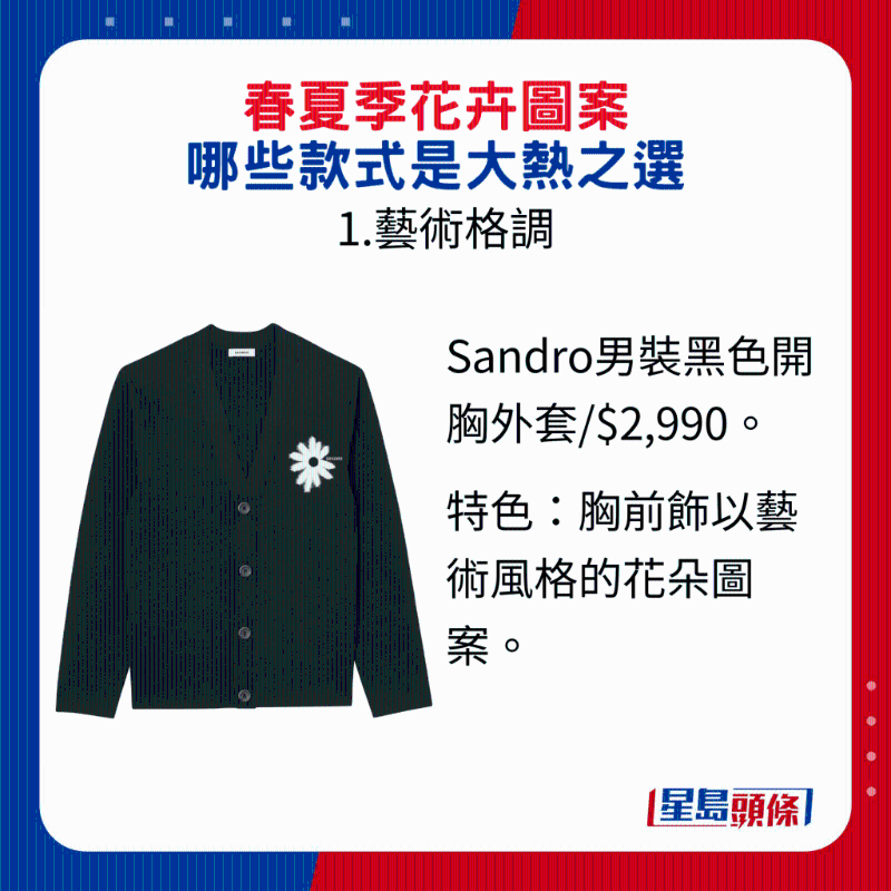 ▲Sandro男裝拉鏈連帽外套 $3,690,褸身飾以水彩畫風的花束圖案。