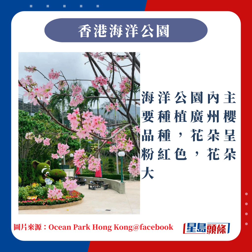 香港10大賞櫻熱點|海洋公園內主要種植廣州櫻品種,花朵呈粉紅色,花朵大