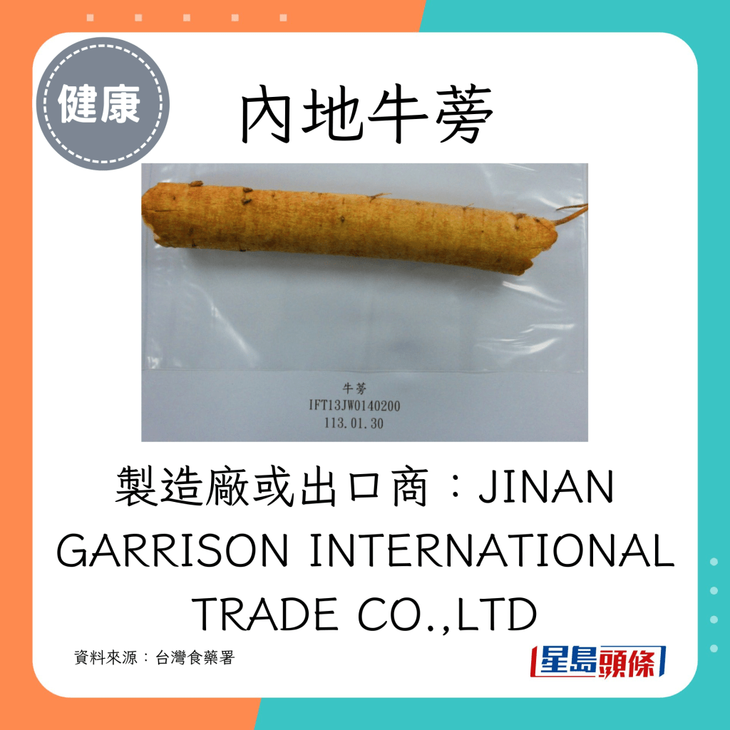 除了上述水果,另有13款食物皆被列為不合格,當中包括海鮮、香料、干貨、零食、急凍食物等,例如內地枸杞、牛蒡,分別被檢出殘留農藥、重金屬、甜味劑等物質超標。 全數不合格的產品都依規定退運或銷毀。