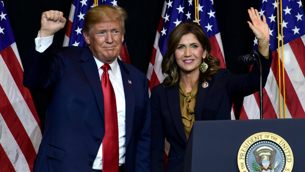 ▲美國南達科塔州州長諾姆(右)是特朗普2024年再度問鼎白宮的熱門副手人選之一。圖為兩人2018年合影。(資料照/美聯社)