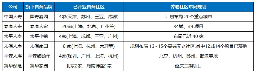現在先簡單總結一下已開業自營社區的6家大型保險公司現狀。
