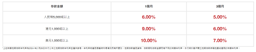 工銀亞洲同樣為南向通客提供優惠,僅需要5,000元人民幣就能入場,其中3個月期享5厘年息,1個月期則享6厘年息。