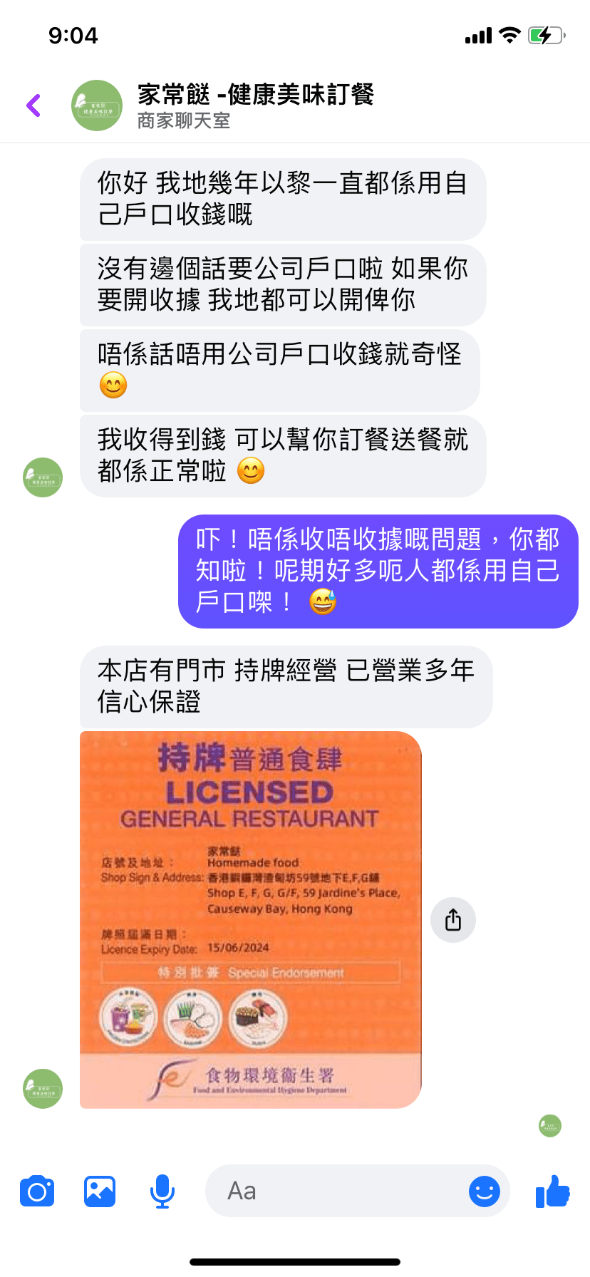 馮先生更利用另一身份向騙徒查詢有否食物牌照時,騙徒便偽造了一張食環署的食肆牌照,“明顯系P圖(改圖)P咗自己個名”,所以馮先生都呼吁市民,網上過數前要查清楚,謹慎免被受騙。