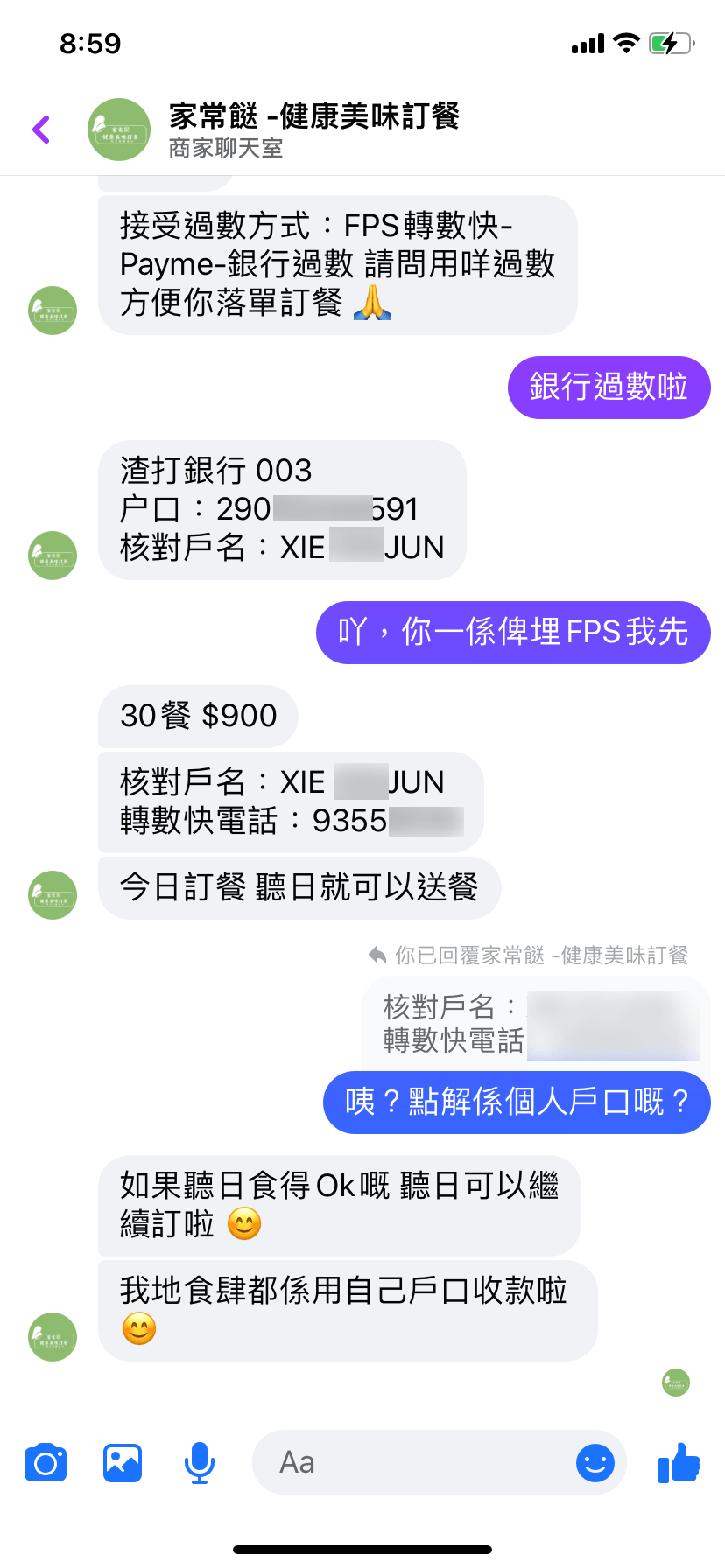沒想過就逐漸步入騙徒的圈套,當他們向專頁索取更多資料后,對方便請馮先生的同事入錢,之后便可以訂餐,“我哋諗住計番起廿幾蚊,都唔會呃啩,咁就入咗錢俾佢(騙徒)?!彼麄?2月底過數,打算1月初便開始訂餐,結果再向對方索取菜單時,便已不獲回復,甚至已被封鎖。