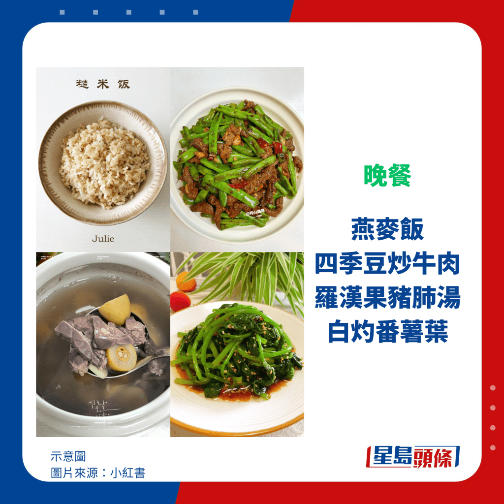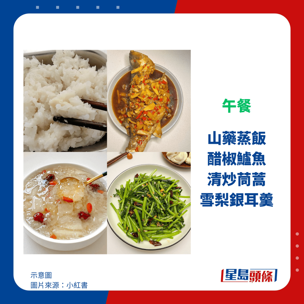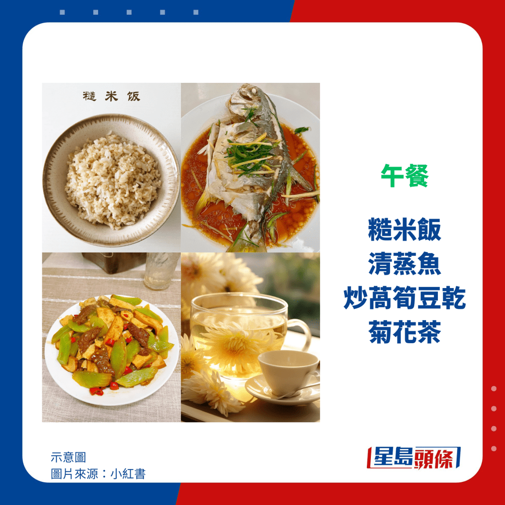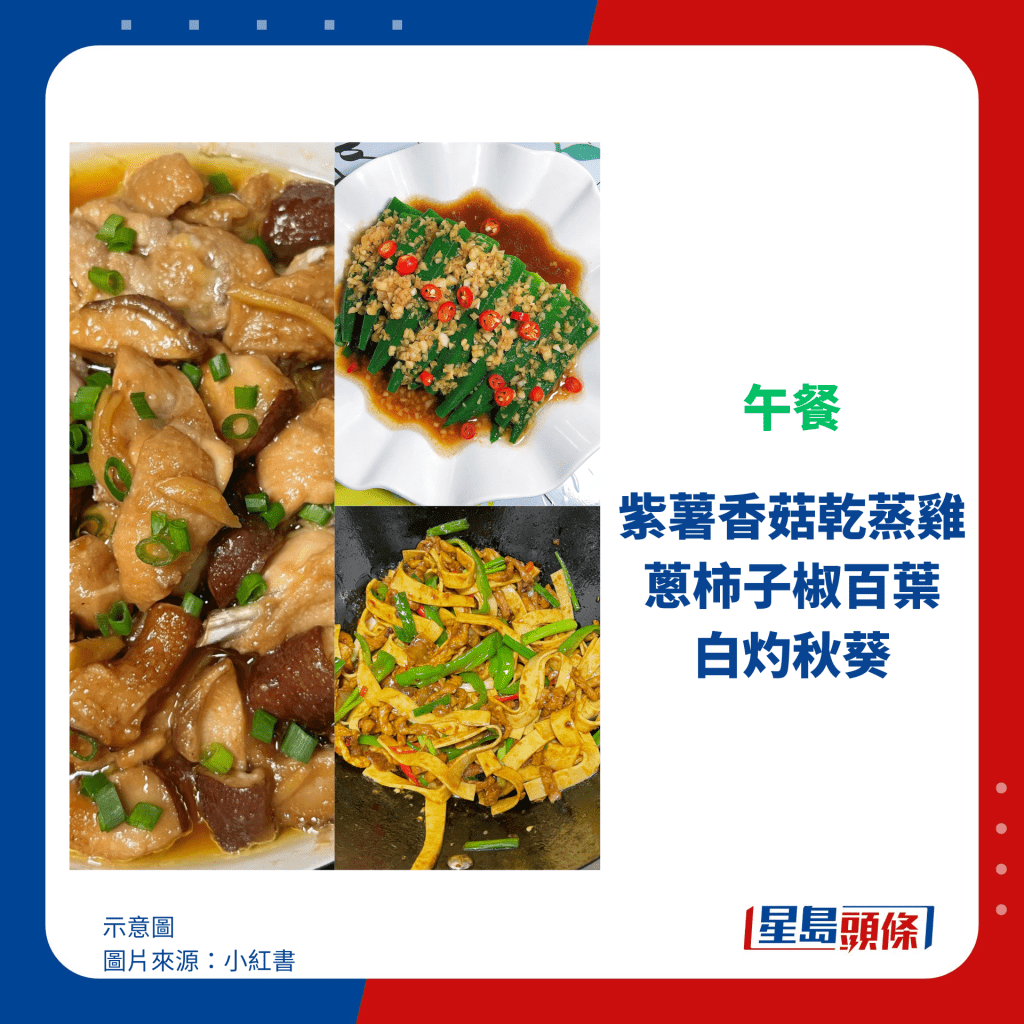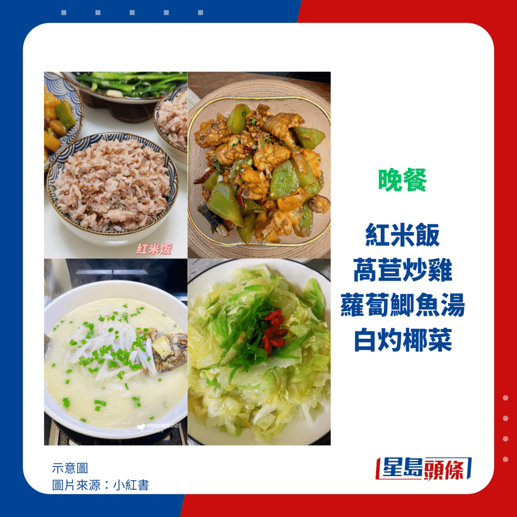 衛健委提醒,食譜可因應個人體質日?;顒恿恳宰鞒稣{整,選擇合適菜式的搭配,必要時,亦可尋求醫生或營養師等專業人士進行指導。