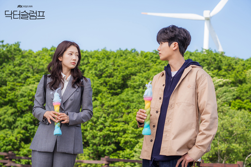 ▲韓國女星樸信惠身穿孖襟西裝外套及長褲,襯以恤衫,造型干練。(圖片來源:JTBC網站)